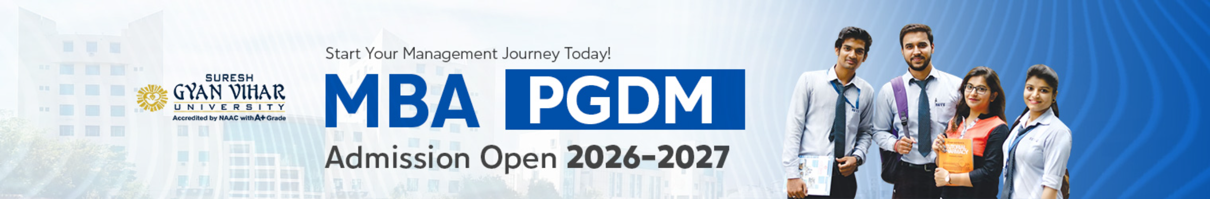 SGVU is NAAC “A+” accredited and AICTE-approved for management programs, ensuring top academic quality.